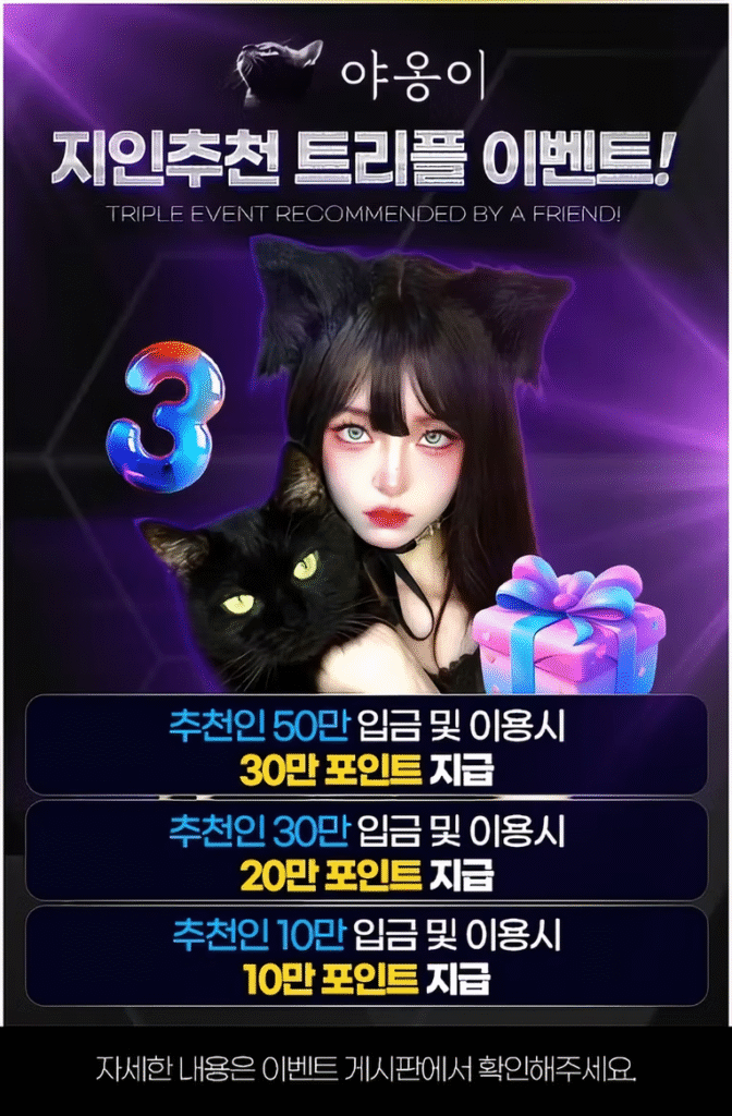 지인과 함께 즐기며 추가 보상까지 받을 수 있는 야옹이카지노 추천 이벤트는 가장 간단하고 확실한 리워드 참여 방법 중 하나입니다.