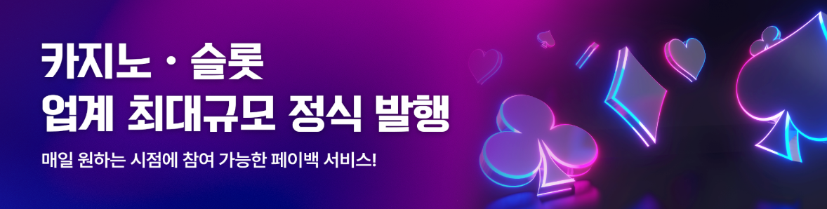 카지노·슬롯 유저를 위한 업계 최대 규모의 페이백 서비스가 정식 발행되었습니다. 일정 시간에 제한되지 않고, 이용자가 원하는 시점에 참여할 수 있는 구조로 설계되어 더욱 자유로운 환급 시스템을 제공합니다.