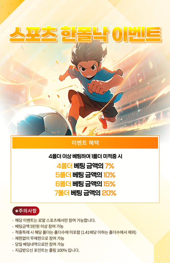 한폴낙 이벤트는 아쉽게 적중을 놓친 이용자를 위한 보상형 혜택으로, 매일 참여할 수 있는 실속형 스포츠 프로모션입니다.