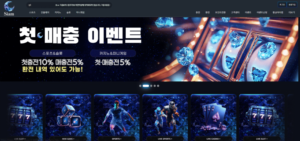 첫 매충 이벤트는 모든 이용자가 참여할 수 있는 기본 보너스 프로모션으로, 샴카지노 내 주요 게임 카테고리에 따라 다른 보너스율이 적용됩니다.