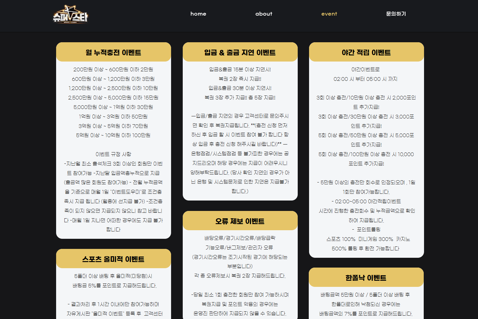 스포츠 올미적 이벤트 적용 기준