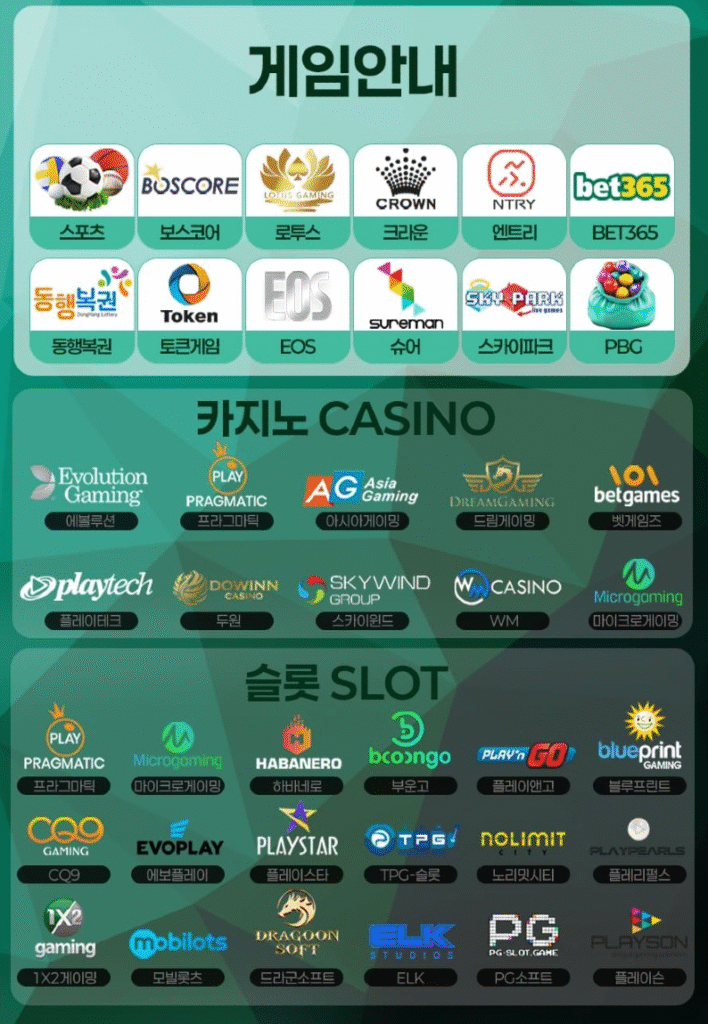 스피드카지노는 스포츠, 라이브 카지노, 슬롯, 미니게임 등 폭넓은 게임 카테고리를 한곳에서 제공합니다. 스포츠 섹션에서는 국내외 주요 리그와 다양한 종목에 실시간 및 사전 베팅이 가능하며, 카지노 섹션에서는 블랙잭, 바카라, 룰렛 등 인기 테이블 게임을 라이브 딜러와 함께 즐길 수 있습니다.