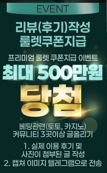프리미엄 룰렛 쿠폰과 최대 500만원 상당의 당첨 보상이 함께 제공되며, 참여 과정이 간단해 누구나 손쉽게 도전할 수 있습니다.