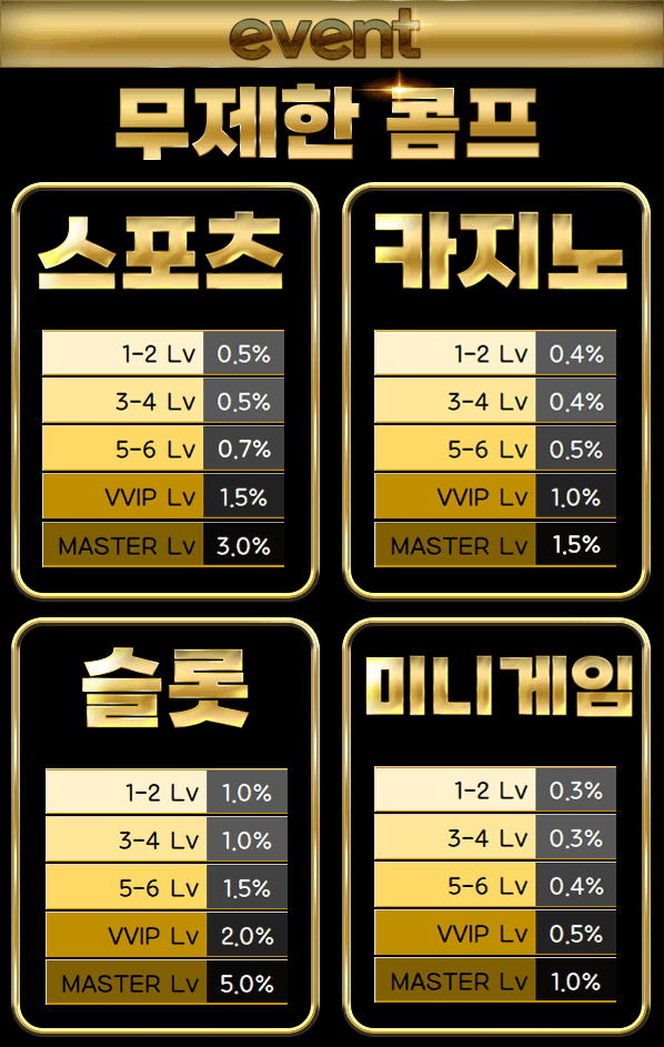 무제한 콤프 이벤트는 장기적인 이용자에게 지속적인 혜택을 제공하며, 레벨에 따라 점점 더 큰 보상을 경험할 수 있는 기회를 마련합니다.