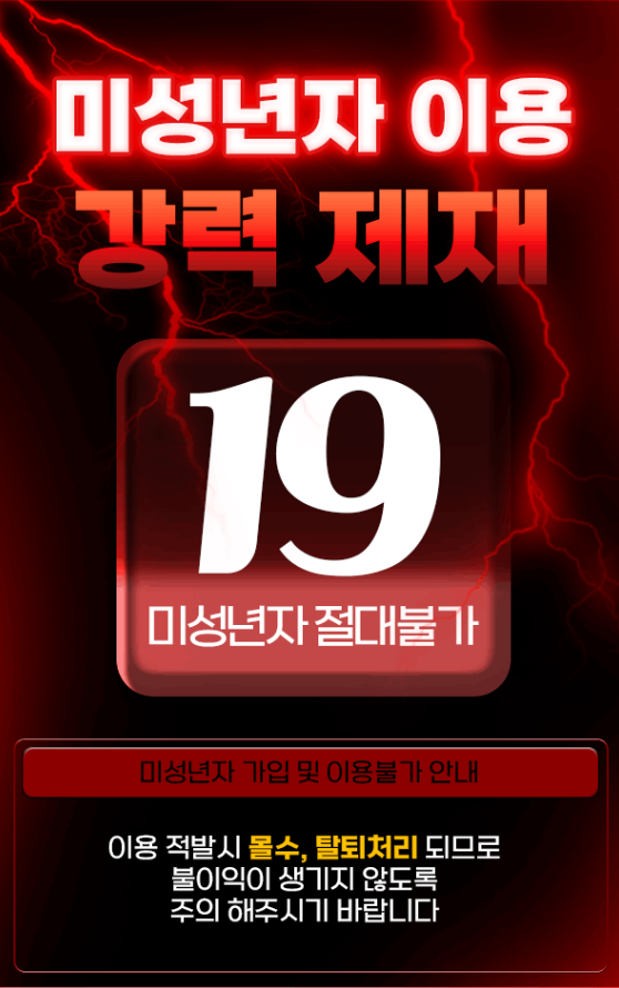 모든 서비스는 만 19세 이상 성인만 이용할 수 있습니다. 미성년자 가입은 원천적으로 차단되며, 적발될 경우 강력한 제재가 따릅니다.