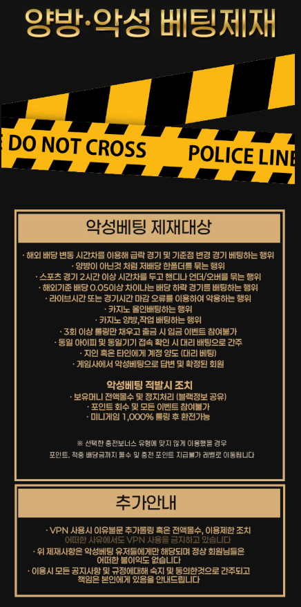 다음과 같은 행위는 악성 베팅으로 간주되어 강력히 제재됩니다.
