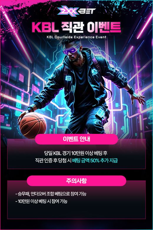 현장의 열기를 직접 느끼며 베팅 보너스까지 함께 누릴 수 있는 이번 KBL 직관 이벤트에 참여해 보시기 바랍니다.