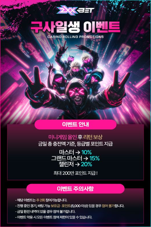 베팅으로 인한 손실을 최소화하고, 일정 금액 충전액과 등급에 따라 포인트를 지급받을 수 있는 특별한 이벤트입니다.