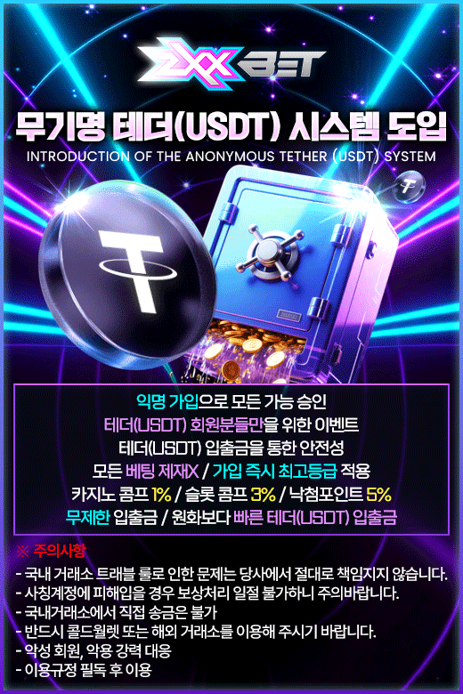 지엑스벳카지노는 이용자의 편의성과 거래 안전성을 강화하기 위해 무기명 테더(USDT) 입출금 시스템을 도입하였습니다.