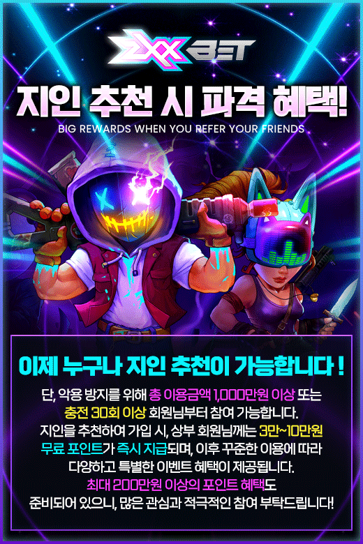 지엑스벳카지노에서 새로운 회원 유입을 위한 지인 추천 이벤트를 진행합니다.