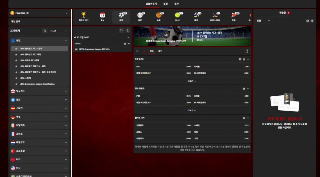 경기당 베팅 마켓이 다양하게 구성되어 있어 단순 승패뿐 아니라 핸디캡, 언더오버, 코너킥, 카드 수 등 세부 항목에 대한 전략적 베팅이 가능하다는 점이 큰 장점입니다. 또한 다폴더 조합에 따른 자동 보너스 시스템도 함께 적용되어 고배당 유저에게 추가적인 수익 기회를 제공합니다.