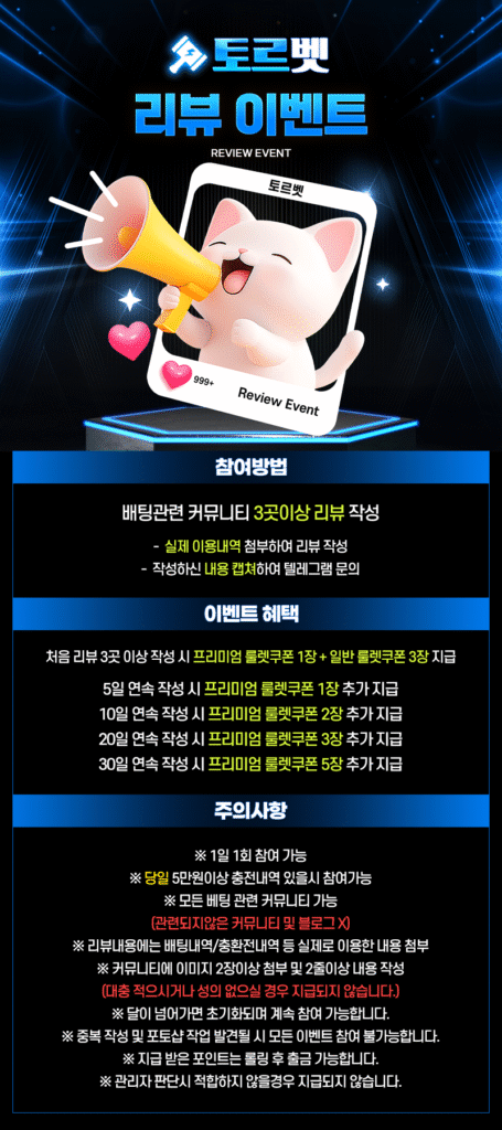 본 이벤트는 베팅 관련 커뮤니티를 대상으로 하며, 일정 조건을 충족한 리뷰 작성 시 참여가 가능합니다.