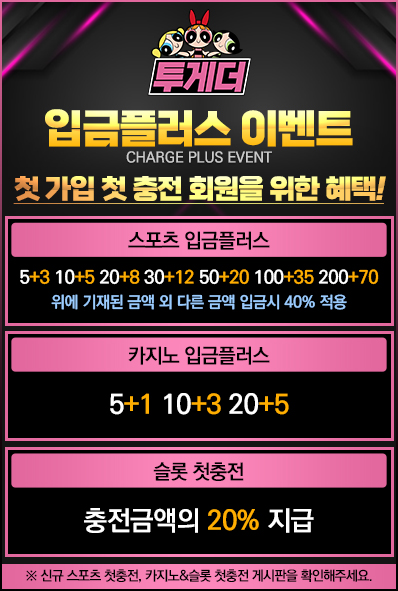 투게더카지노는 첫 가입 및 첫 충전 이용자를 위한 다양한 입금플러스 혜택을 구성하여, 스포츠·카지노·슬롯 등 각 분야별로 차등 적용되는 추가 혜택을 제공합니다.