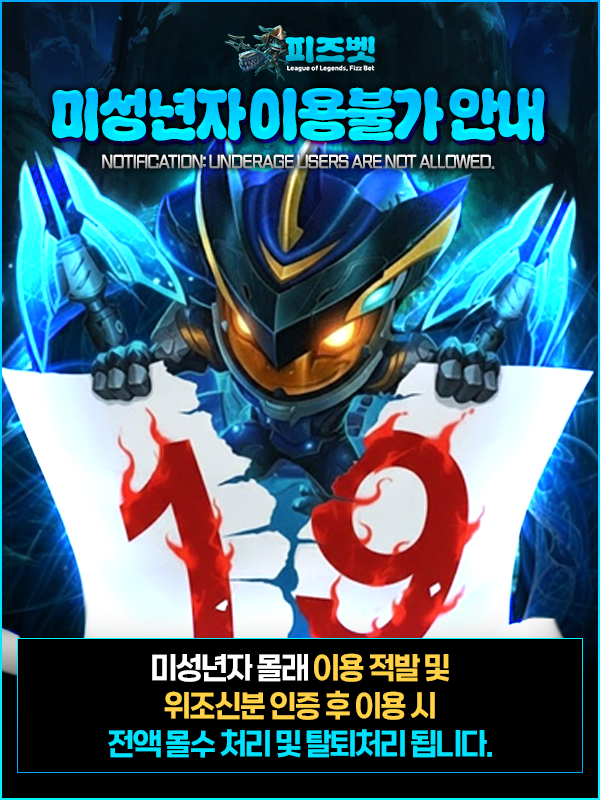 피즈벳은 미성년자의 이용을 허용하지 않으며, 관련 기준을 엄격하게 적용하고 있습니다. 만 19세 미만 이용자는 회원 가입 및 서비스 이용이 불가합니다.