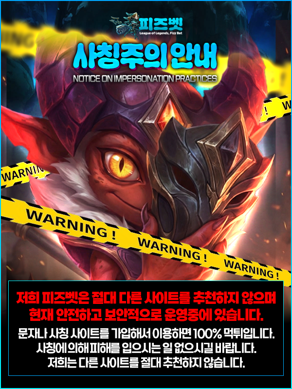 피즈벳은 다른 사이트를 추천하거나 홍보하지 않으며, 특정 외부 사이트 가입을 유도하는 행위를 진행하지 않습니다. 피즈벳을 사칭하여 문자나 메시지로 안내되는 사이트는 공식 운영과 무관합니다.