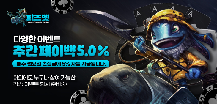 피즈벳에서는 이용 손실을 기준으로 정기적인 혜택을 제공하는 주간 페이백 이벤트를 운영합니다.